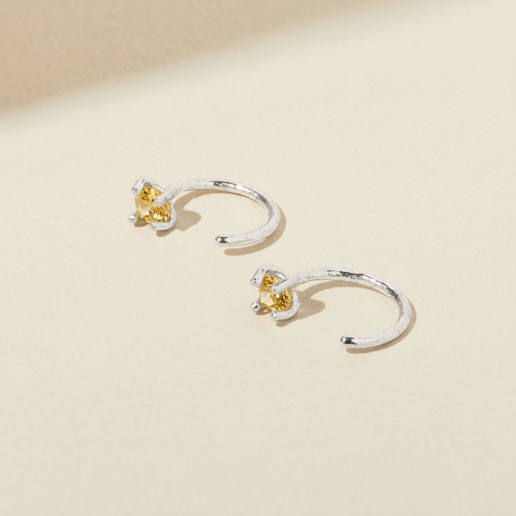 Citrine Hugger Earrings in silver finish