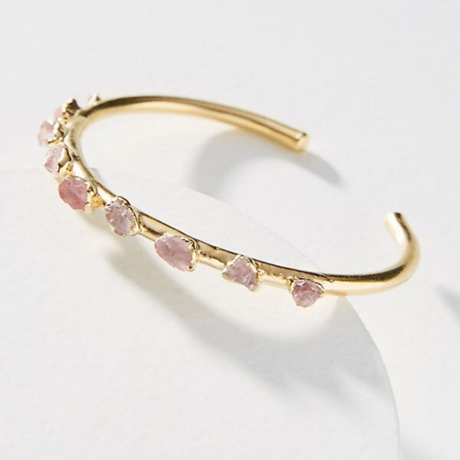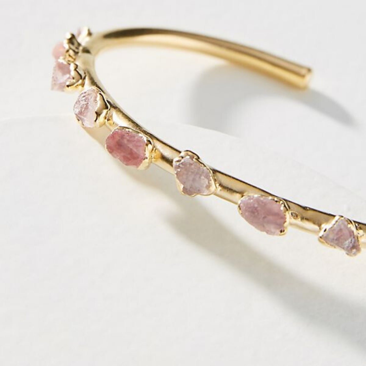 A thin round cuff dotted with rose quartz stones. Delicate yet deviant.