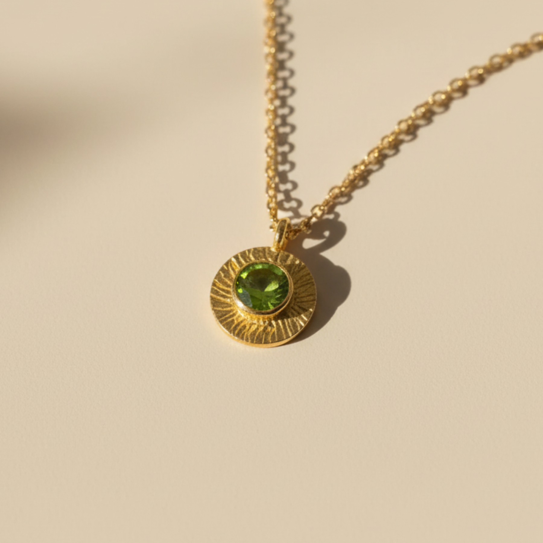 The Peridot Coin Necklace frames a vibrant peridot known for its bright, uplifting energy. The etched coin design adds texture and a grounded feel, making this a piece you can reach for every day. It’s a small reminder to stay balanced, stay open, and let new possibilities find you.