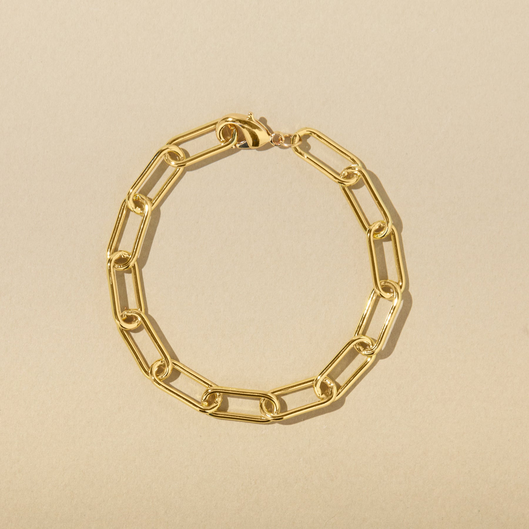 This chunky gold-filled chain bracelet is bold enough to wear on its own or can add some edge to a layered look. The end of the bracelet is finished with a lobster clasp, allowing you to effortlessly adjust the length as needed.