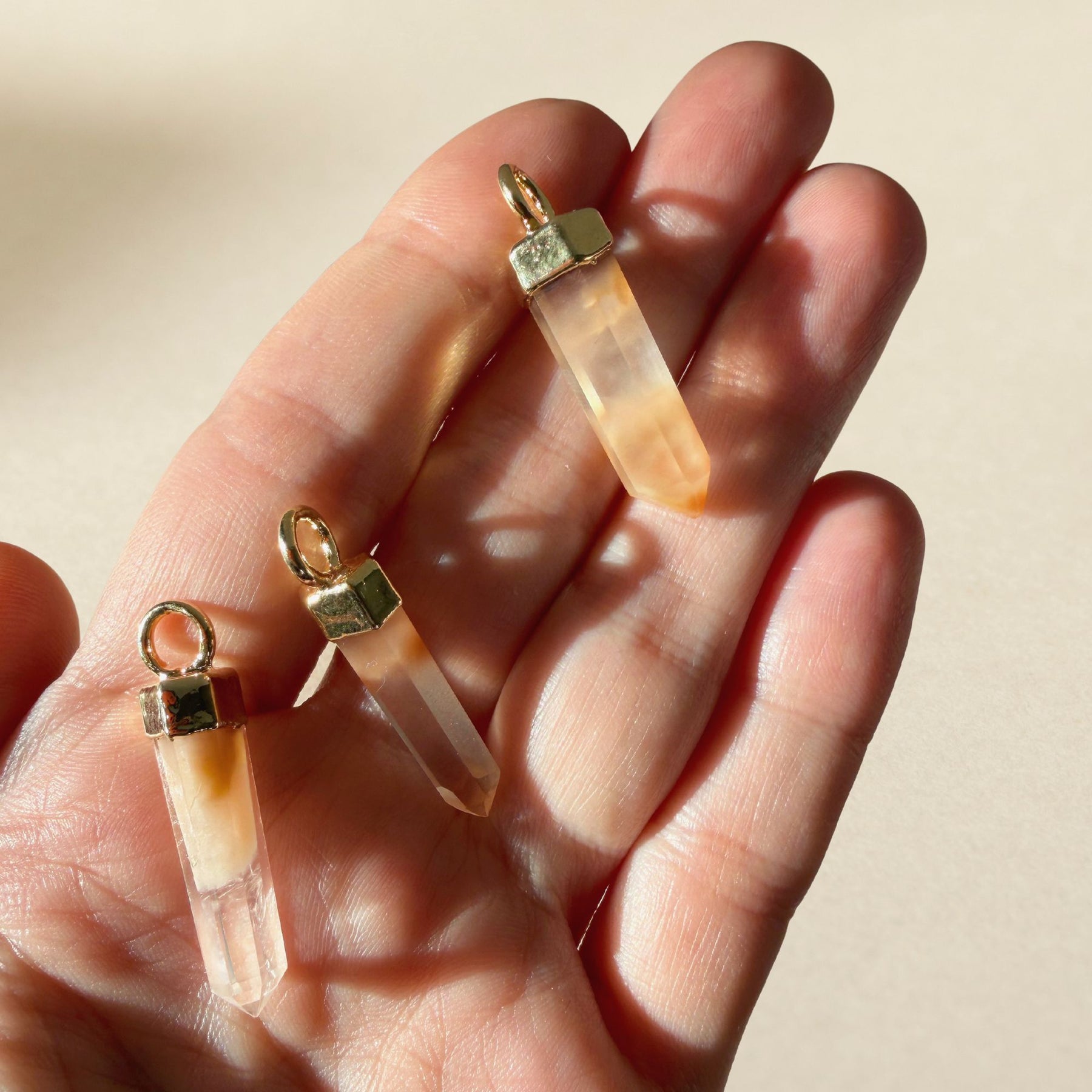 Warm, bright, and quietly energizing, these natural tangerine quartz points feel like little sparks of sunlight. Each one has its own soft wash of orange, created over time as the crystal met iron-rich minerals in the earth. The result is a warm, almost glowing gradient that makes every pendant feel a little bit enchanted.